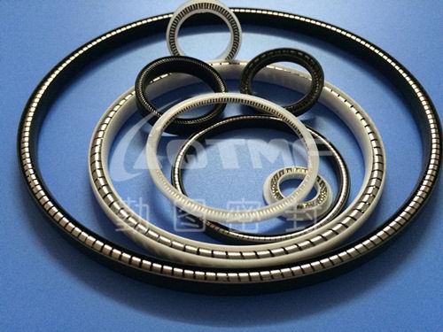 铁氟龙(PTFE)是一种耐化学性比全氟橡胶优异,耐热性良好的密封材料,可应用于绝大多数的化学流体、溶剂、以及液压油、润滑油,其膨润性很小故可长期发挥密封性能,利用各种特殊弹簧来克服铁氟龙或其他高性能橡胶塑料的弹性问题,开发出可替换绝大数应用于静态或动态(往复或旋转运动)的密封件,使用温度范围可由冷媒至300℃,压力由真空至超高压力700kg移动速度高达20m/s,而弹簧可因应不同的使用环境,选用不锈钢、Elgiloy Hastelloy等,故可应用于各种高温腐蚀流体的场合。